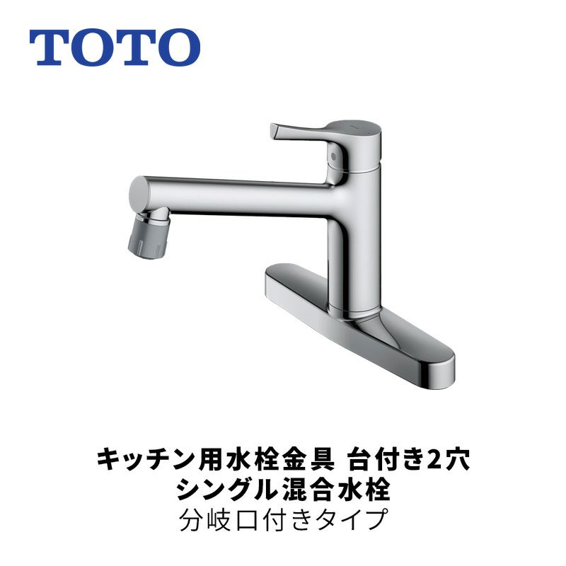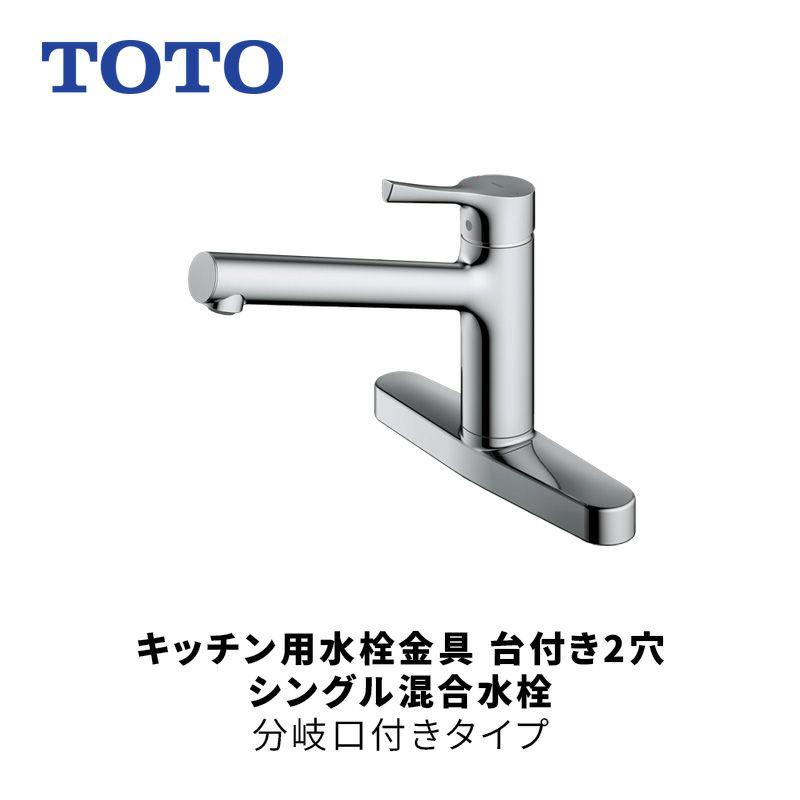 TOTO(トートー)キッチン用水栓金具 台付き2穴 シングル混合水栓 分岐口付きタイプ