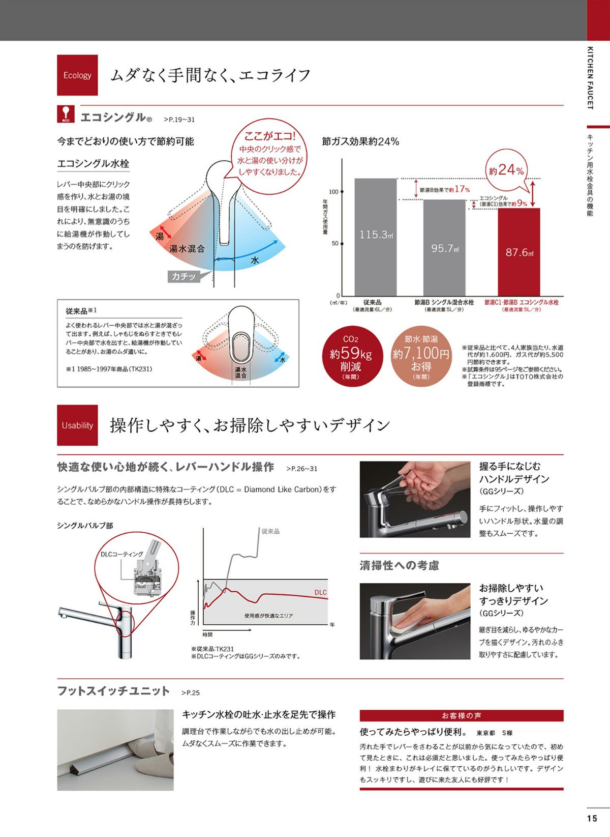 寒冷地対応などの機能があり、使いやすさや清掃性、デザインもそれぞれ異なります。