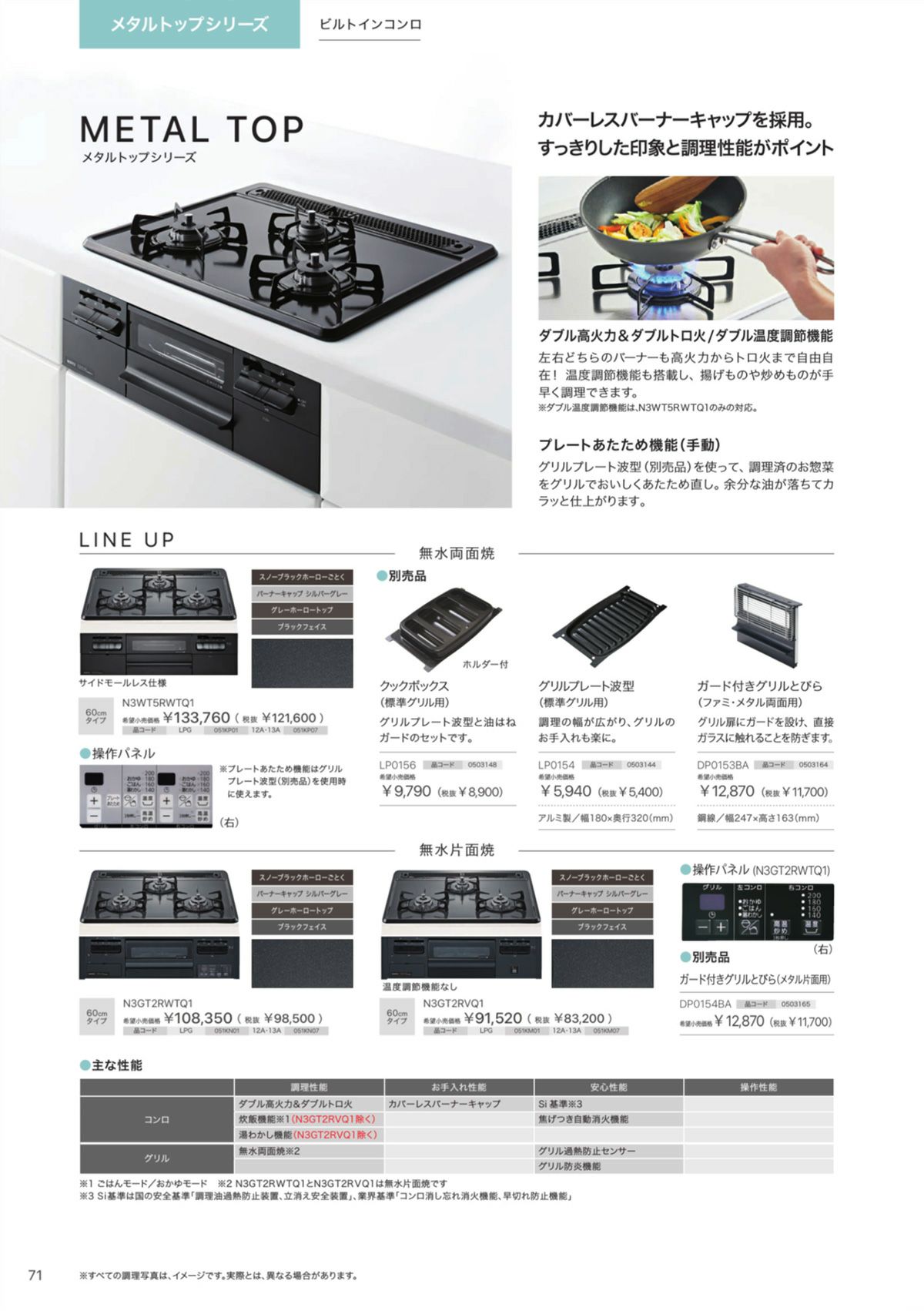 ビルトインガスコンロには、コンパクトタイプや高火力タイプなどがあり、