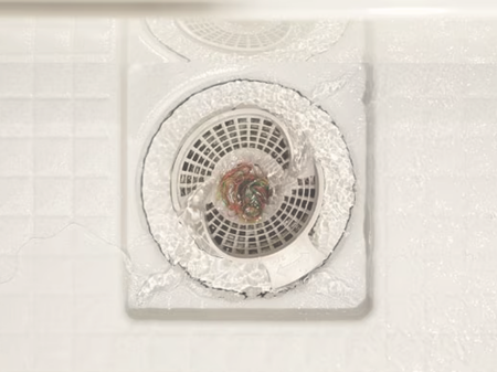 長~い髪の毛や皮脂汚れ、石鹸カスなどが溜まった排水口。
