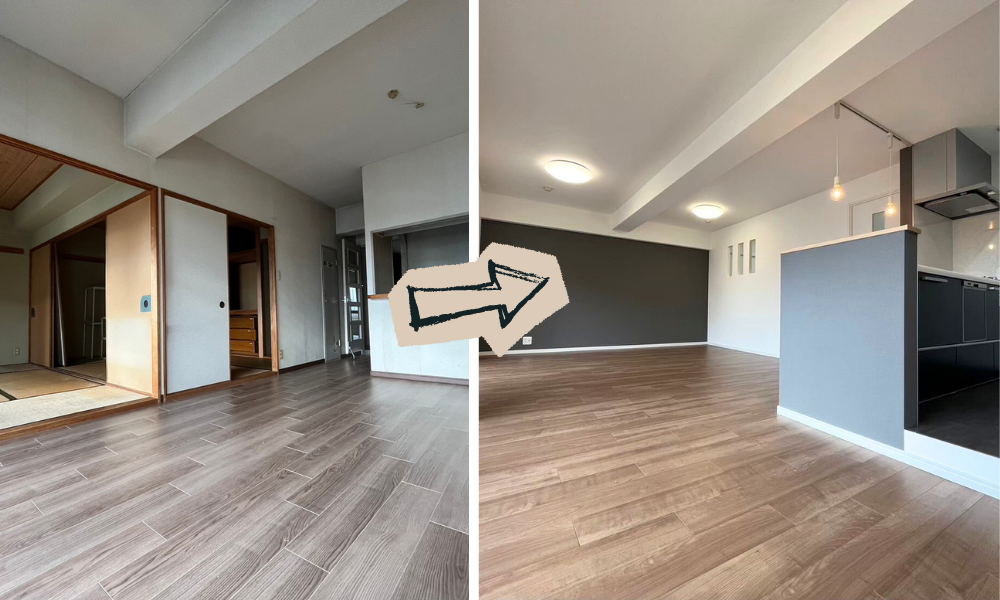• もともと2部屋だったLDKは壁を無くし広々LDKに