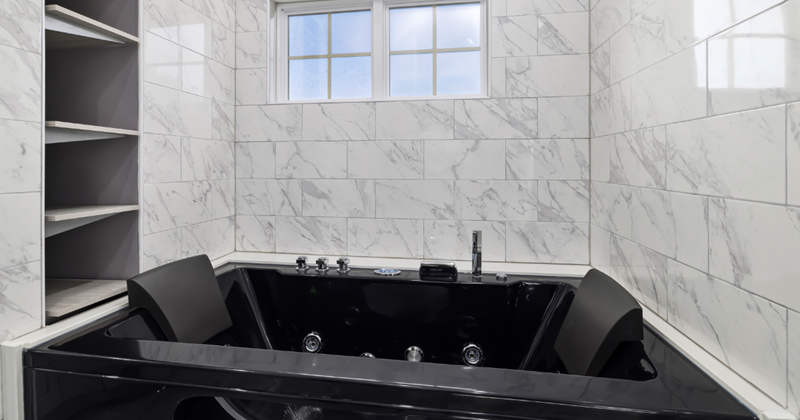 マットな黒の壁、ダークグレーの浴槽……。シックで最高に格好いいですよね。