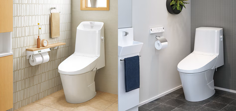 タンク式でありながら、タンクレスのような低く滑らかなシルエットが特徴の「LS」。 手洗い付きで使いやすさを追求した「HS」。 どちらもコンパクトな設計で、どんなトイレ空間にも美しく馴染みます。