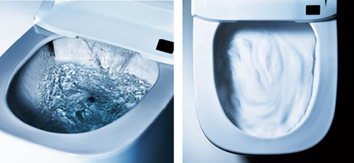 便器の内側をムラなく強力に洗い流す、3方向の水流が汚れをしっかり落とします。