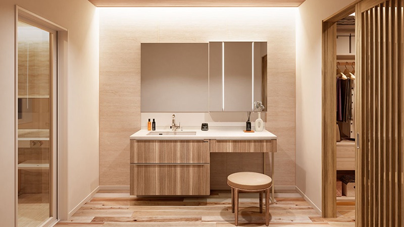 一日の始まりと終わりを過ごす場所、洗面化粧台。