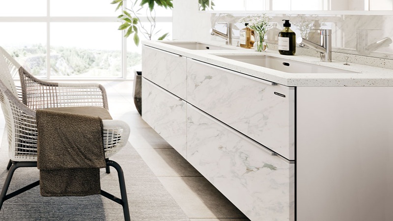 スキンケア用品の液だれも気にする必要がありません。また、縦型のLED照明「フェイスフルライト」を選べば、顔に影ができにくく、毎朝の身支度がより楽しく、正確になります。
