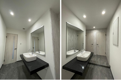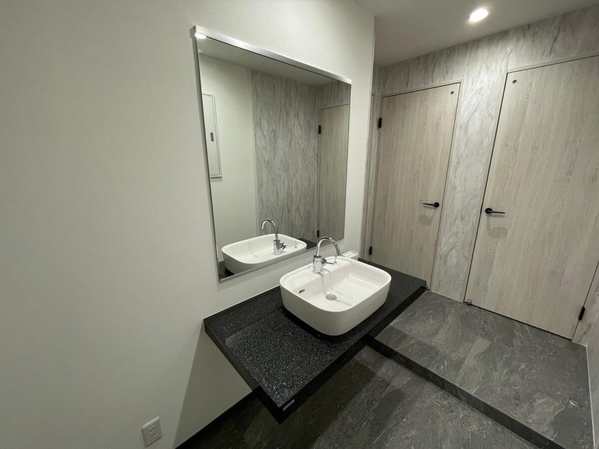 床や壁に使用した素材が統一感を出してくれて、清潔感とスタイリッシュさを兼ね備えたデザインになっております🙌✨
