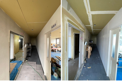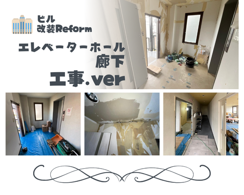 皆様こんにちは😊本日はビルの改装工事のエレベーターホール、廊下の工事中をご紹介です🙌✨
