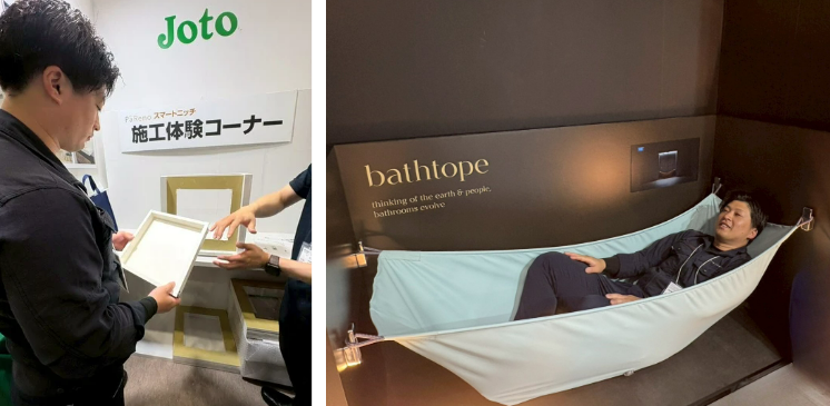 簡単に施工できるニッチの体験や最新のバストープも見ることが出来ました🙌✨気持ちよさそうですね😎