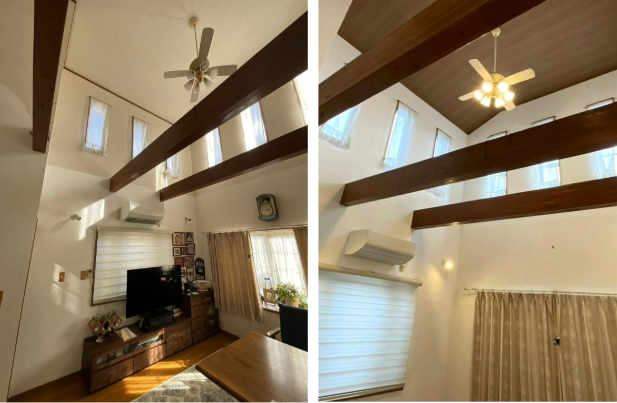 「リビングの壁は自分たちで塗ってきたけど、吹き抜け部分は難しくて…」