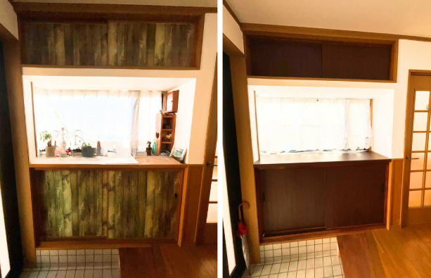 • カウンターや扉・天袋にダイノックシートを施工