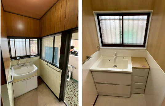 換気性能を高める新設パイプファンと、Panasonic シーライン洗面化粧台を設置。