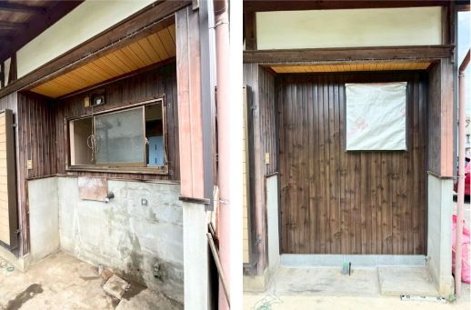 ブロック基礎・新壁立ち上げを行い、仕上げはヨドプリント板で清潔感ある空間に。