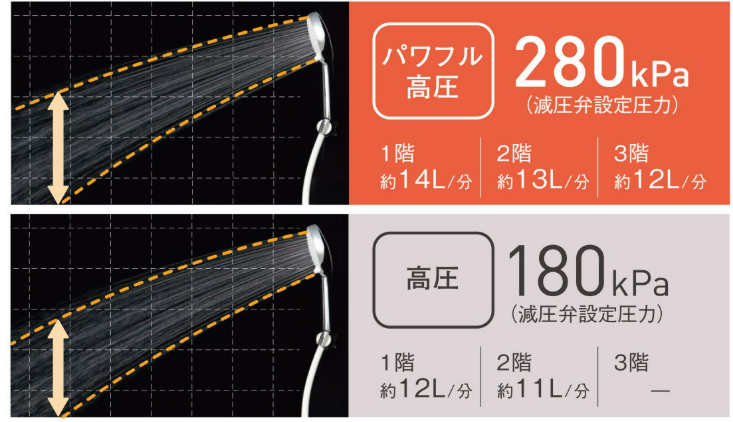 - 2階でもしっかりシャワーが使える「パワフル高圧」