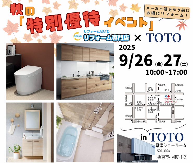 場所:TOTO草津ショールーム(栗東市小柿7-1-21)