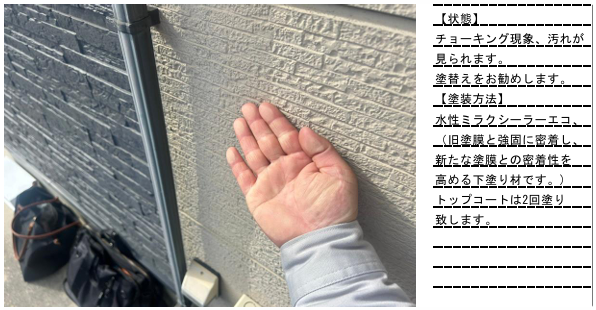 - チョーキング(白い粉が手につく)やヒビ割れが見えたら要点検