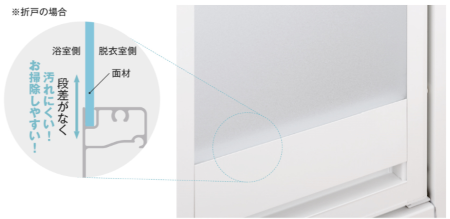 こちらの浴室ドアのポイントの1つがお掃除のしやすさです👏カビの発生や汚れがつきにくい加工が施されており、お掃除も楽ちんなのです🎵