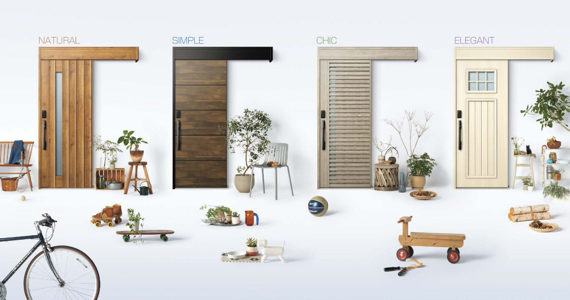 「M30 顔認証自動ドア」は 全22デザイン・全12カラー のラインアップから選べるので、住まいの外観や好みに合わせたコーディネートが可能です😊