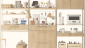 収納棚には、可動棚システムなどの収納建材が多く使用されています