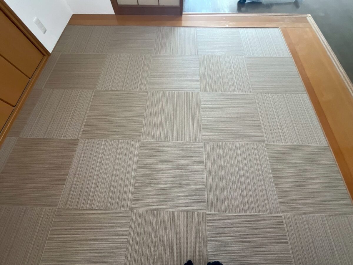 テキスタイルフロアは、一言で言えば**「洗える織物のタイル」**です。 畳のようなさらっとした質感と、カーペットのクッション性を兼ね備えています。