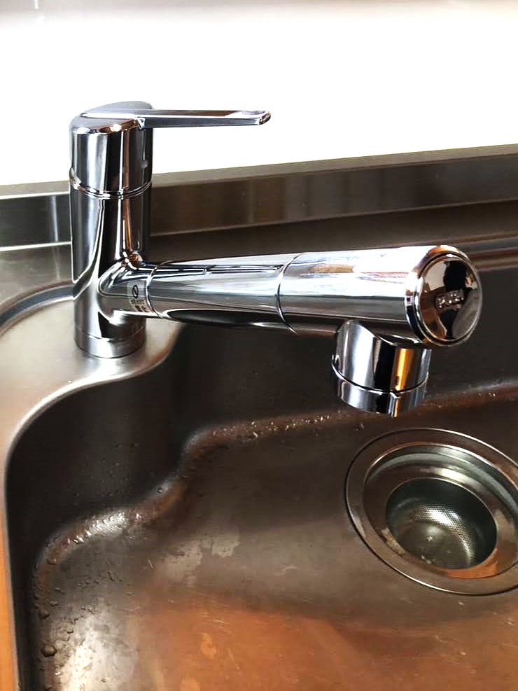 引きだせるシャワーヘッドでシンク内のお掃除が楽ちんに♪