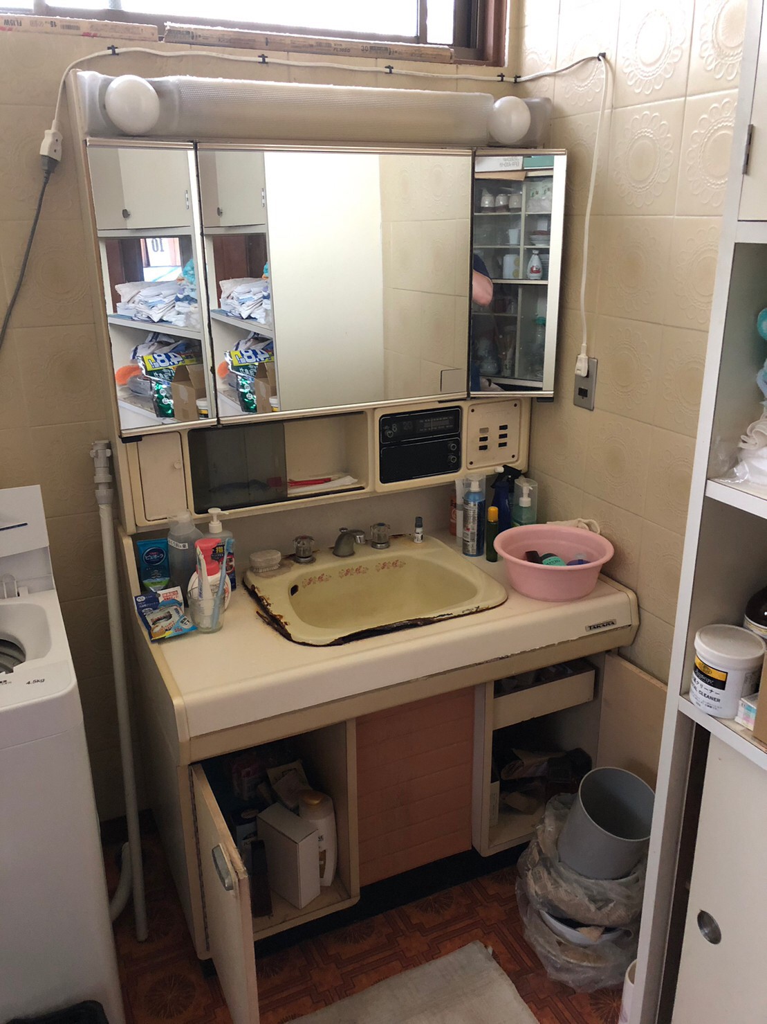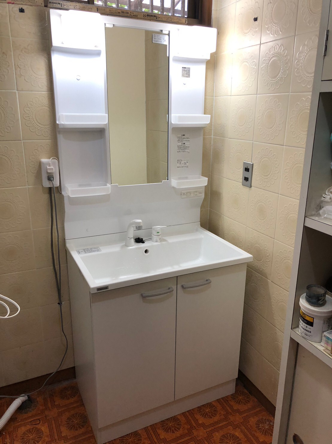 だいぶ年季の入った洗面台を新しいものに交換✨真っ白の洗面台で清潔感がUPしただけではなく、洗面台本体は一回りコンパクトになりましたが、洗面ボウルは元の洗面台よりも大きくなり、作業効率もUP♡!コンパクトになったぶん、お部屋のスペースも広々使えます😍