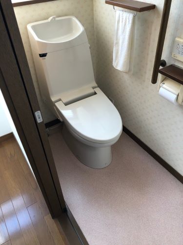トイレ、洗面化粧台の取替・お風呂のシート貼り、笠木のリアテックシート張り替えを施工させていただきました✨