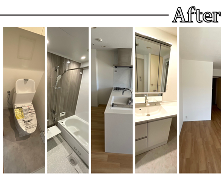 水廻りを一新し、使い勝手の良いお家に大変身✨キッチンは”二人でキッチンに立ちたい”というお客様のご要望を叶えるためにレミューを採用😊小さなお子様を見守りながら料理が可能です💕