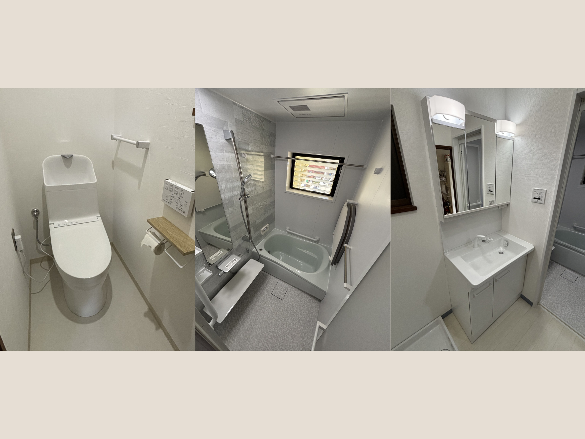 お風呂、洗面室、トイレをリフォームさせていただきました✨雰囲気がガラッと変わりましたね😊