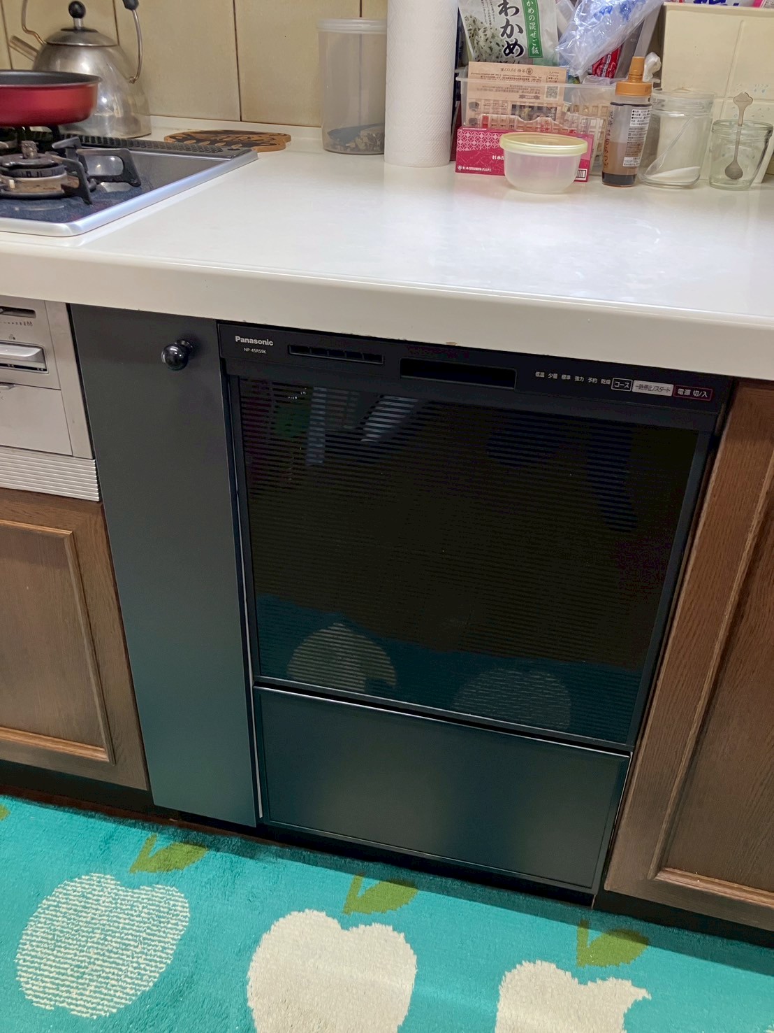 食洗器が故障したため取替のご相談でした😊使用している食洗器より一回り小さい物に変更したいというご要望があり、15cm小さい商品をご提案✨余ったスペースには専用のキャビネットを取り付け、見た目も自然に、使い勝手も良くなりました💕