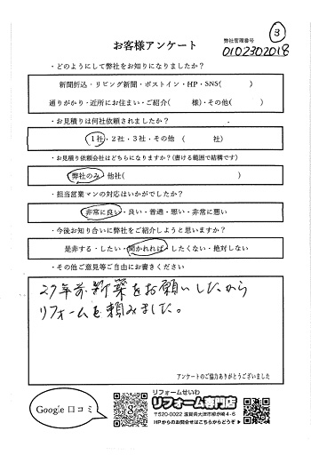 27年前新築をお願いしたからリフォームを頼みました。