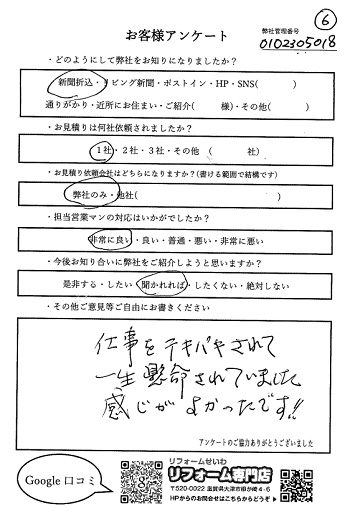 仕事をテキパキされて 一生懸命されていました! 感じが良かったです!