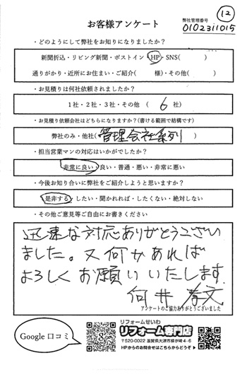 迅速な対応ありがとうございました。 又何かあればよろしくお願いいたします。