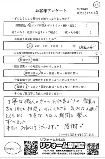 丁寧な職人の方々のお仕事ぶりや、営業の方の何でも相談にのってくださる 気さくな人柄でとても日々大変なリフォーム期間を楽しくすごせました 本当にありがとうございます♡ 感謝♡