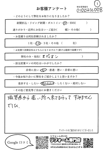 滋賀県から遠い所へ来てもらって すみませんでした。